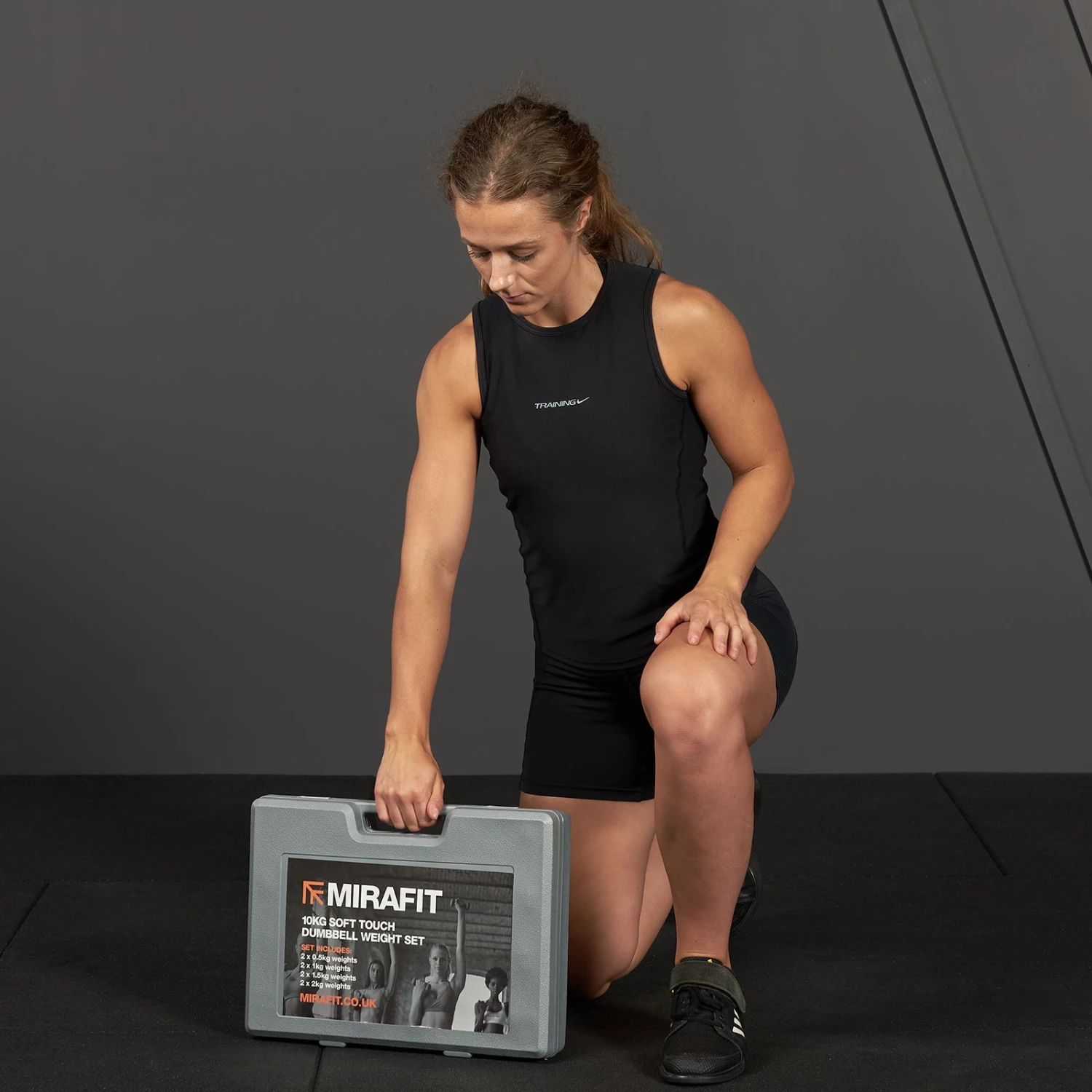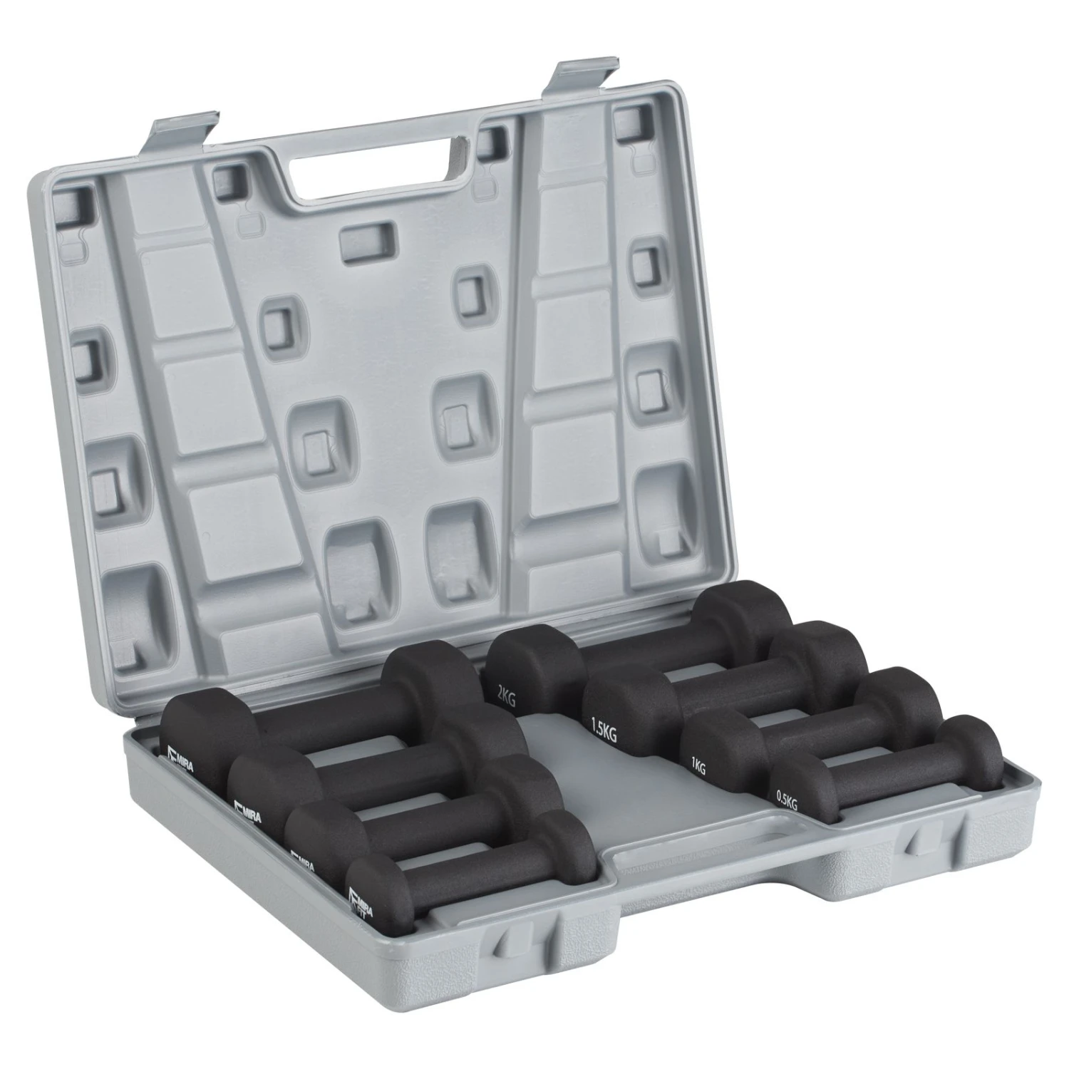 - All dumbbells are printed with Mirafit logo and weight