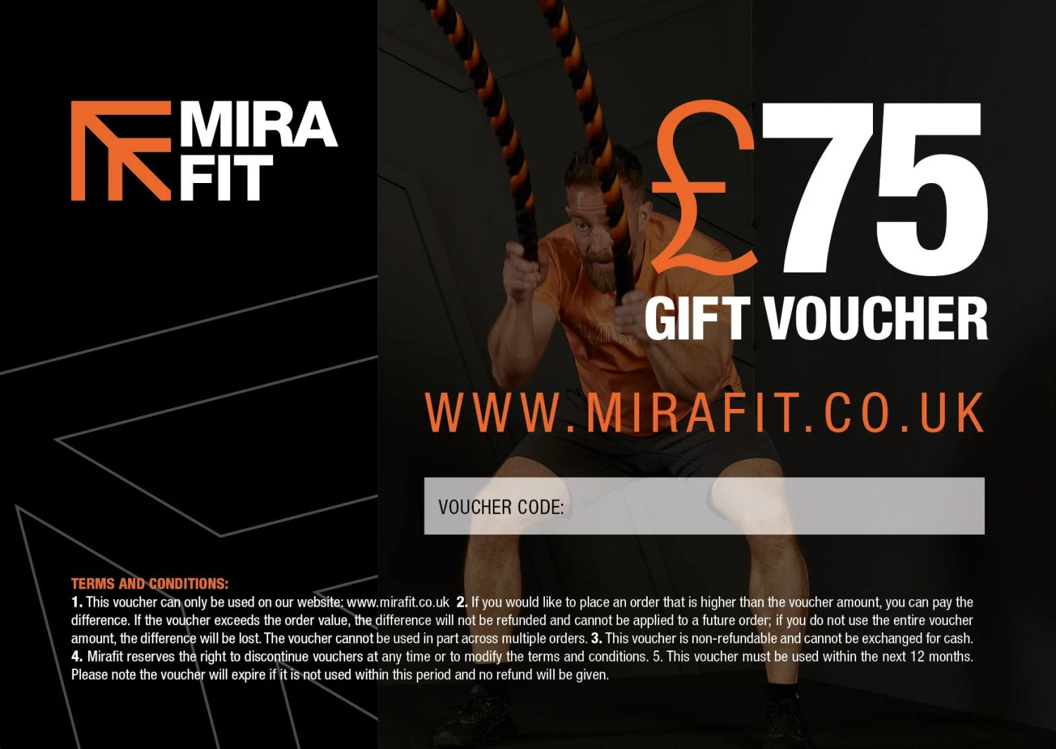 1. This voucher can only be used on our website: mirafit.co.uk