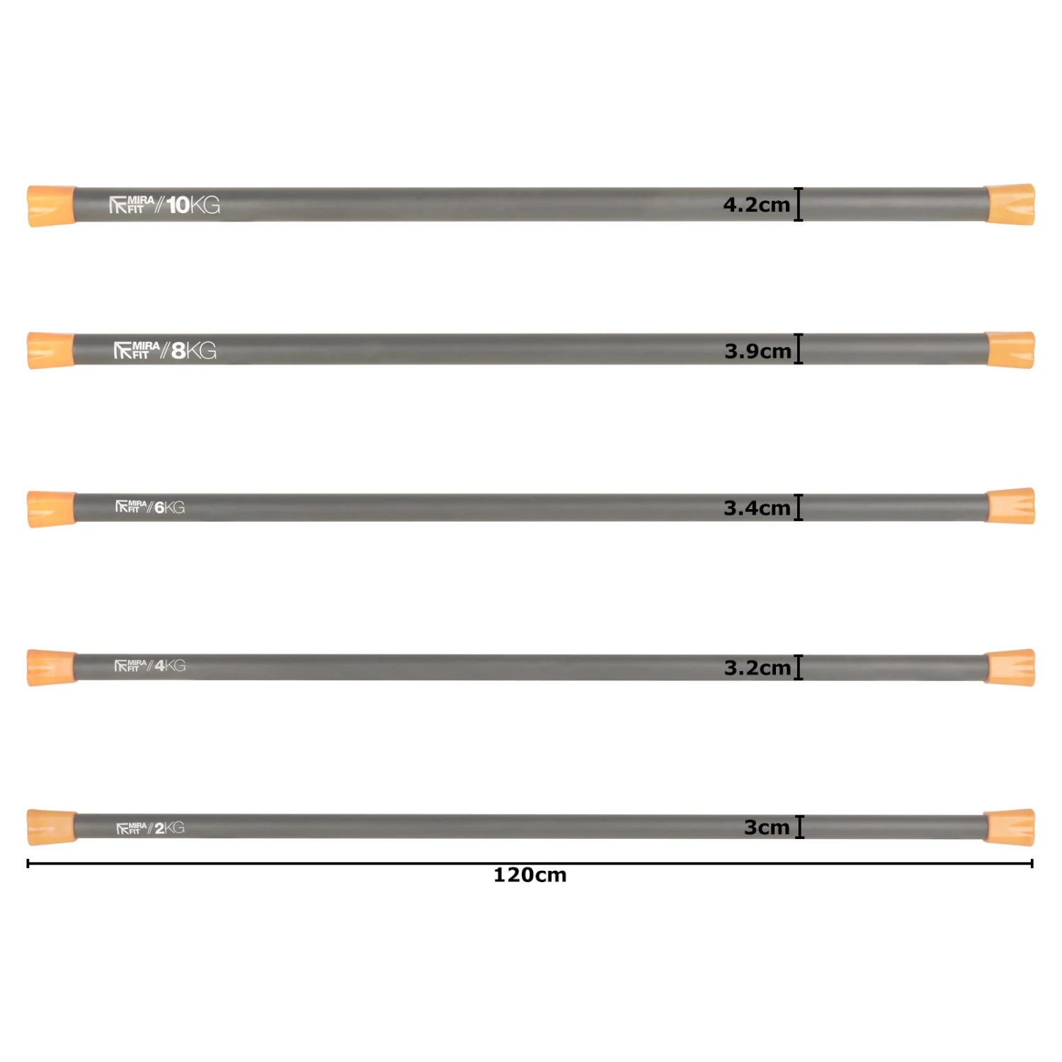 - 8kg body bar: 120cm X 3.9cm