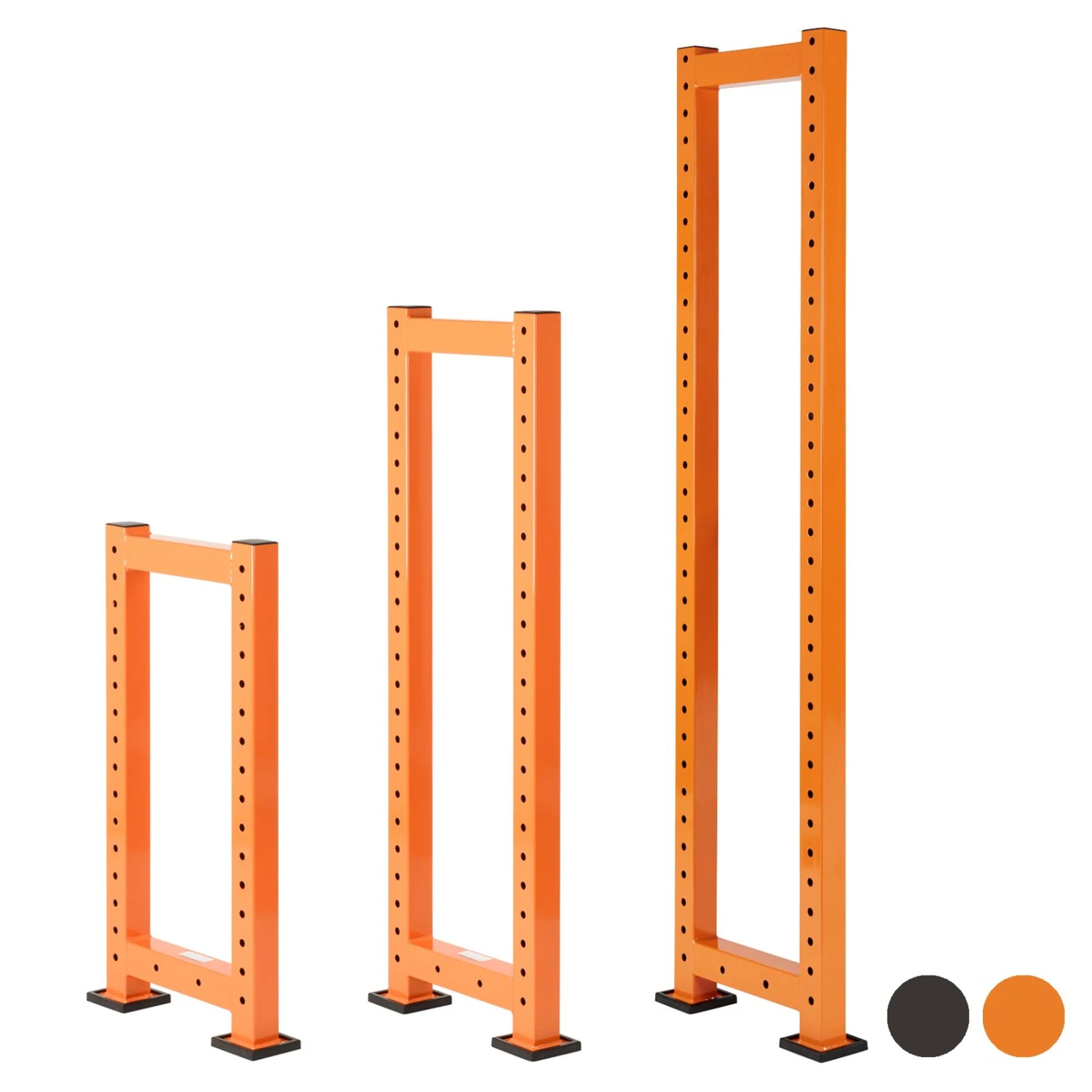 - Non-marking black rubber foot caps on uprights protect floors against