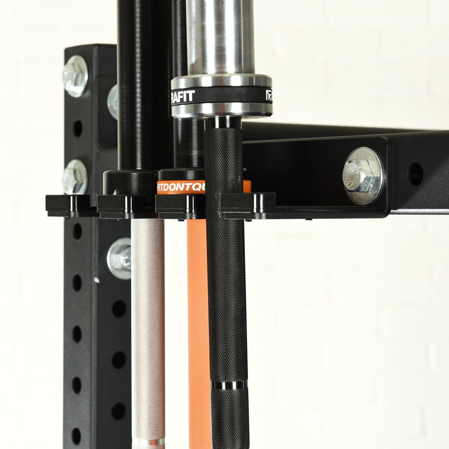 Our Rack Mounted Barbell Holder will keep your gym neat and tidy. Bolting directly onto the cross member of the M3 rack this holder has a three bar capacity and HDPE liners to protect bars from damage.
