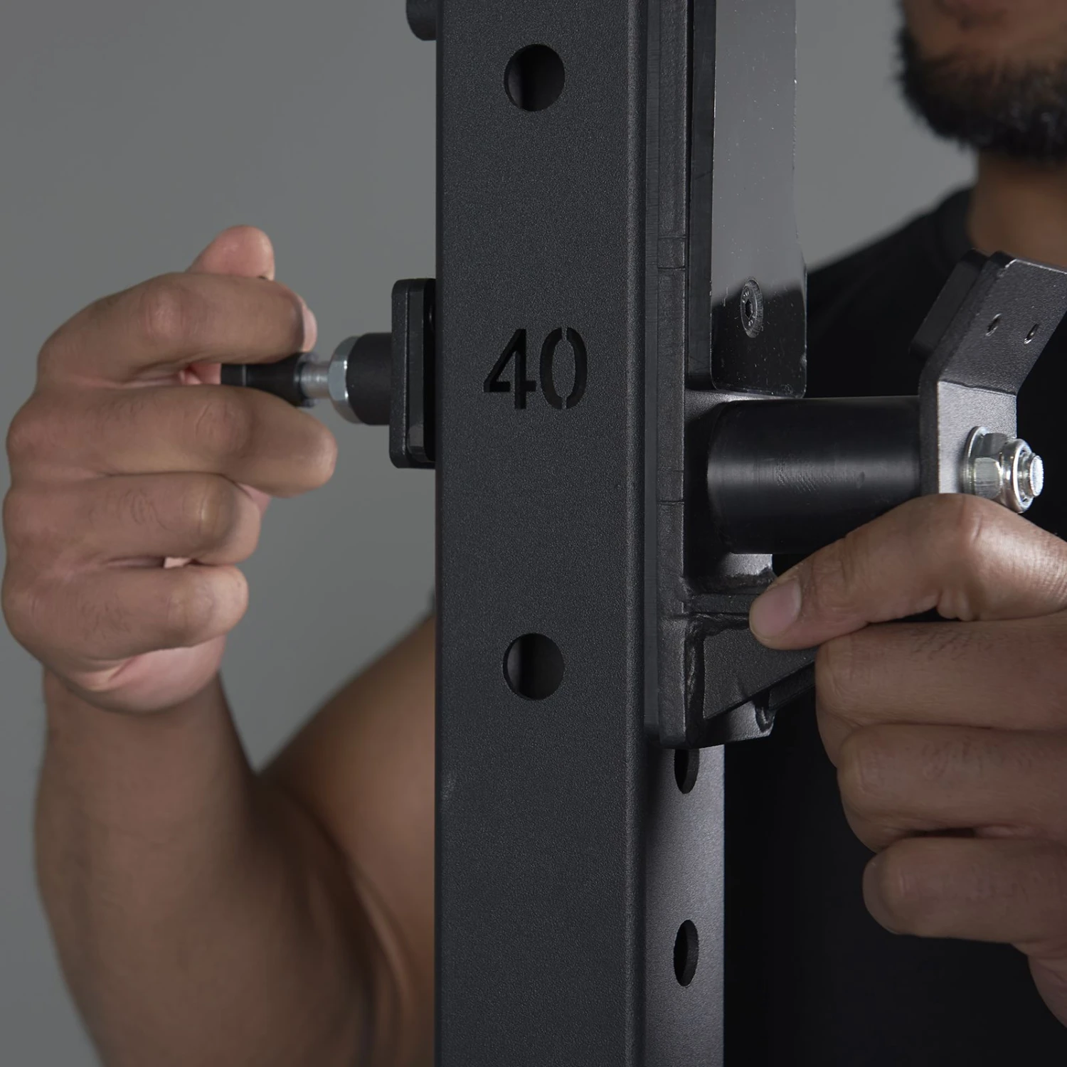 - Roller J-Cups allow for easy centering of the barbell before unracking