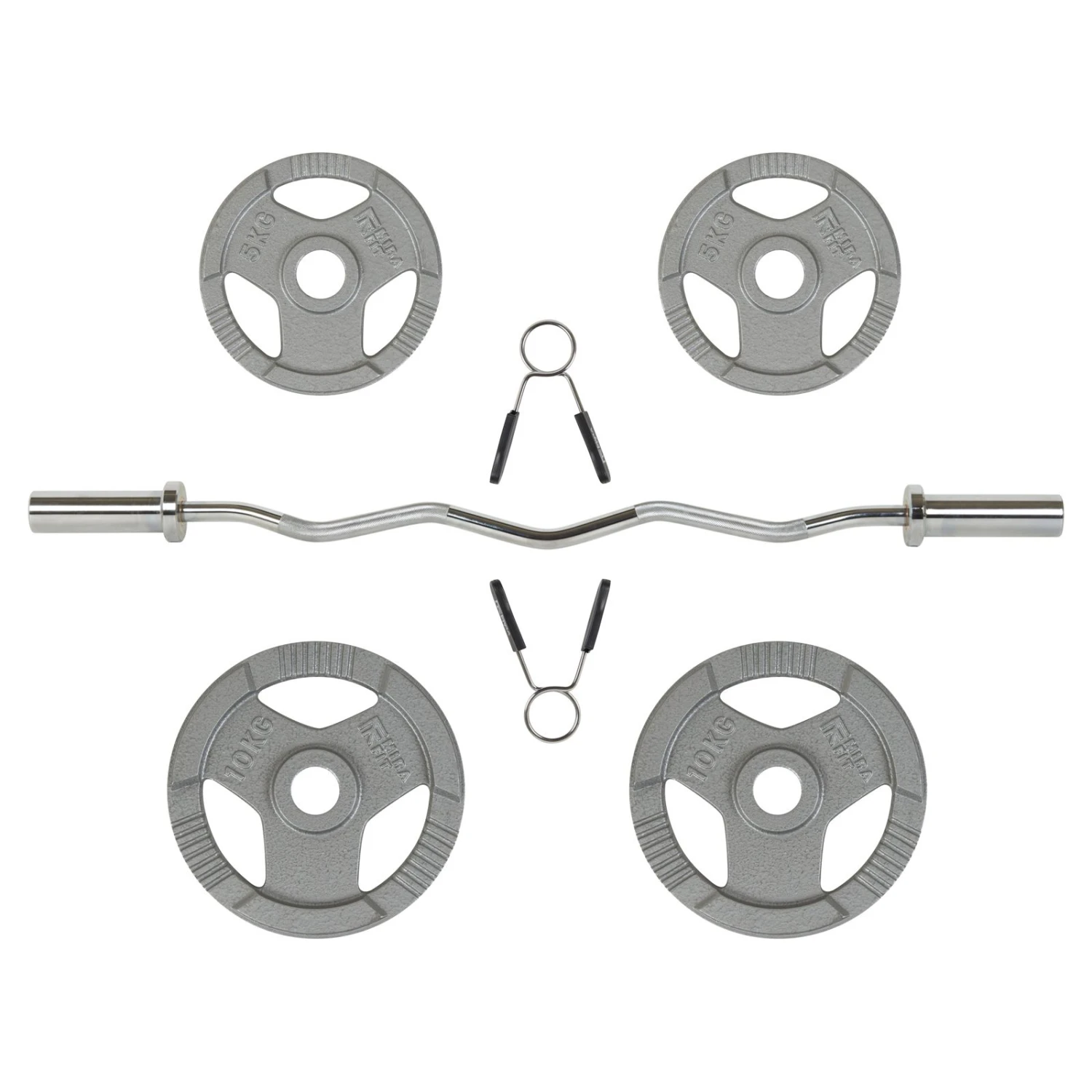 Mirafit Olympic Curl Bar & 30kg Tri Grip Weight Set