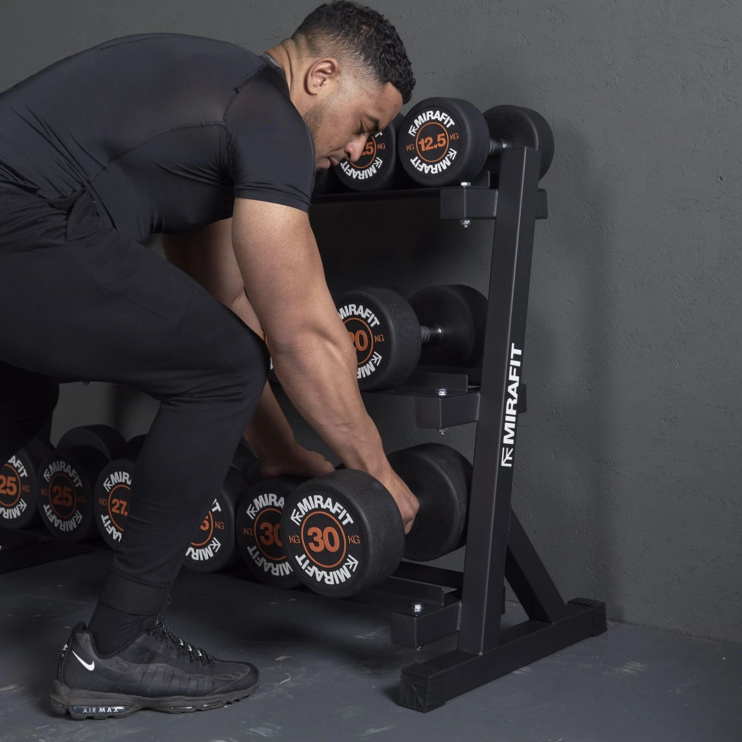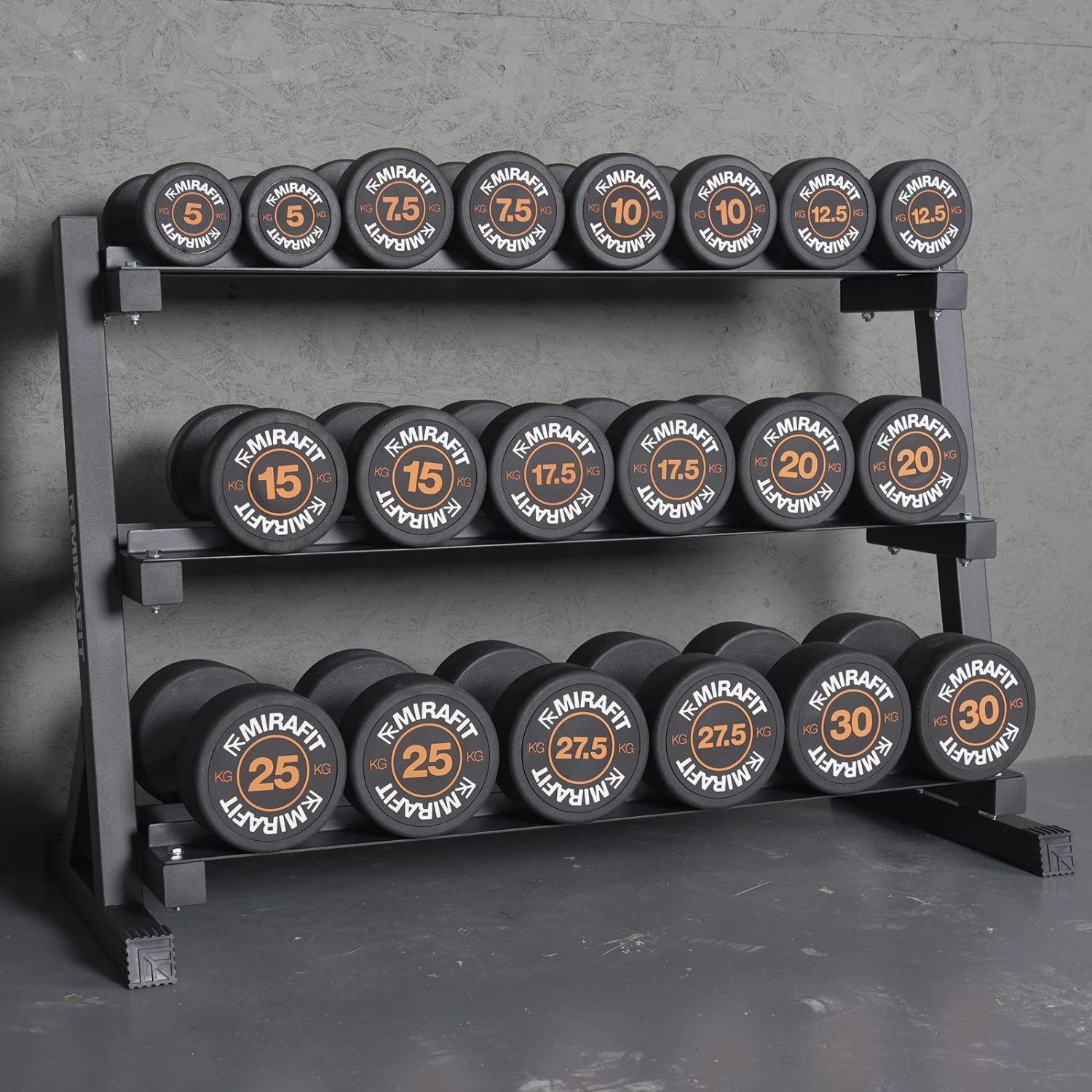 - Mirafit Rubber Dumbbell Set & 3 Tier Weight Storage Rack
